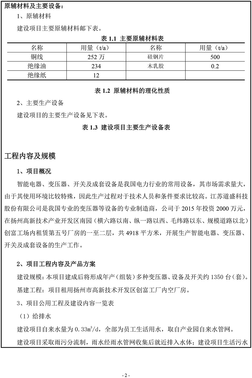 江蘇道盛科技股份有限公司 智能電器、變壓器、開(kāi)關(guān)及成套設(shè)備生產(chǎn)項(xiàng)目報(bào)告表(公示版)